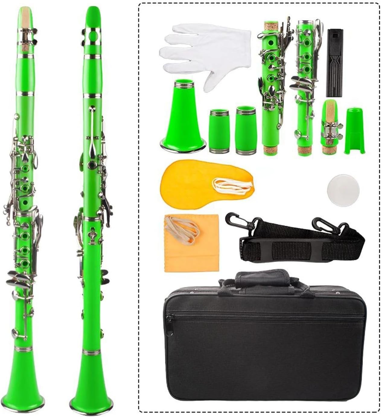 The shape is also very beautiful, the tone is smooth, bright and clear, and full of expressiveness, making it very suitable for professional performance.Material: ABSKey: BbItem Size: 67cm * 8cmItem Weight: 1320gProduct name: ClarinetApplicable scope: EveryoneUse scenario: Beginner practice Professional performanceIf you have any questions or suggestions, please contact us and we will answer them for you.